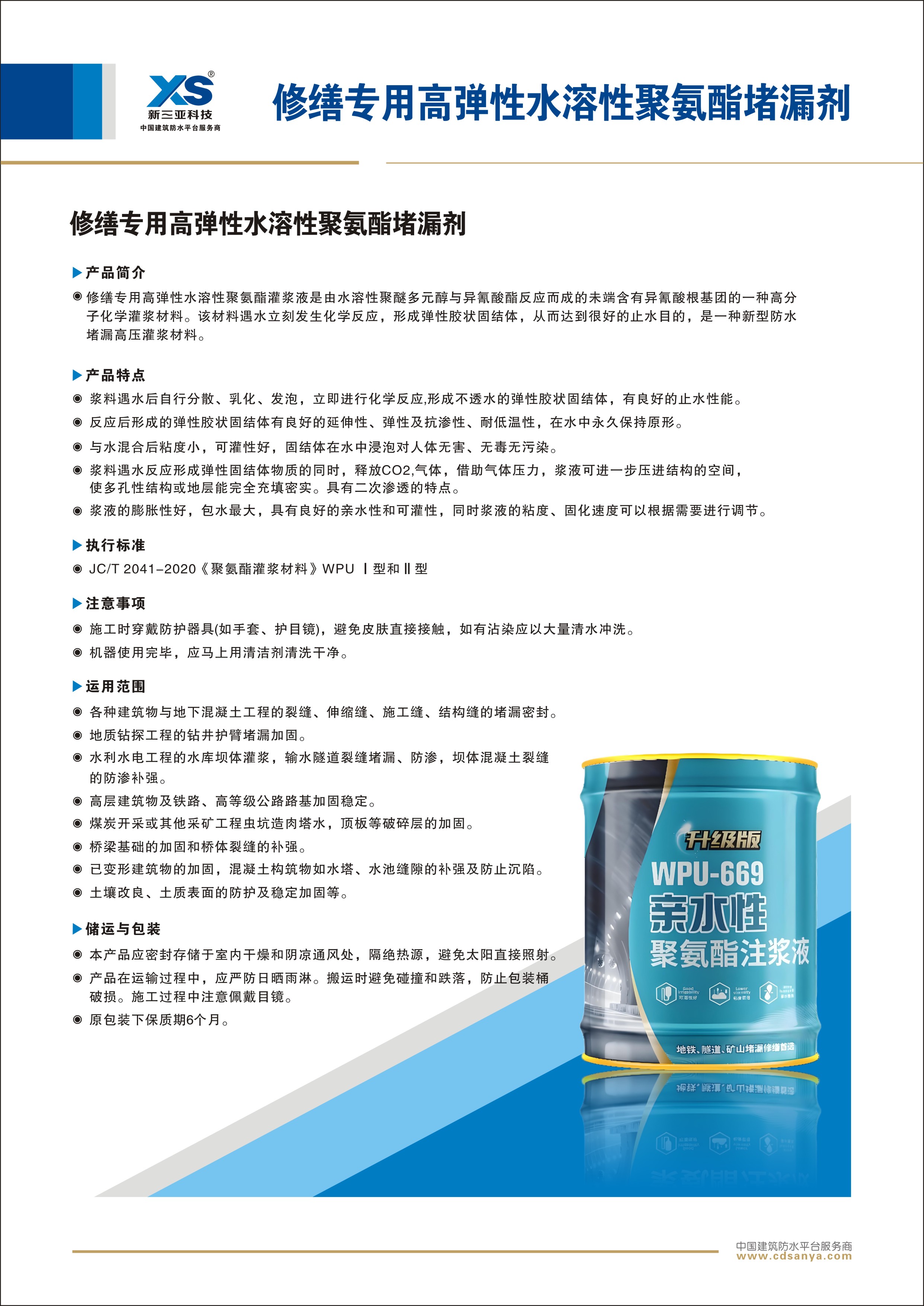 | 高彈性水溶性聚氨酯堵漏劑(Ⅱ型 親水型) | |